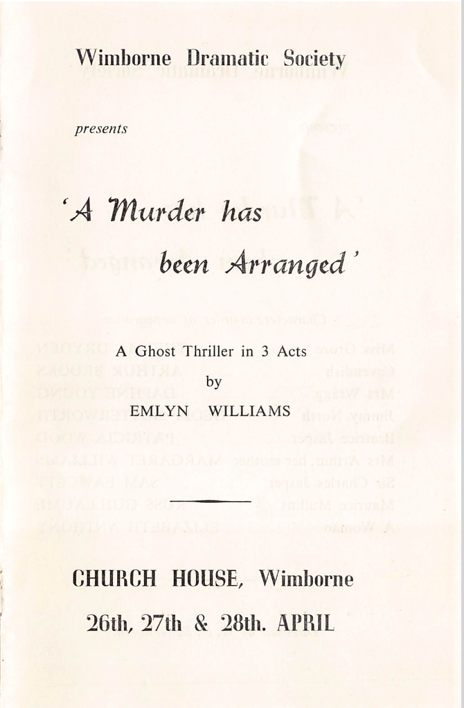 Small, but appreciative audiences greeted Wimborne Drama Clubs production of ‘A Murder Has Been Arranged’ in Church House last week. The company had obviously worked hard to achieve the standard they did.