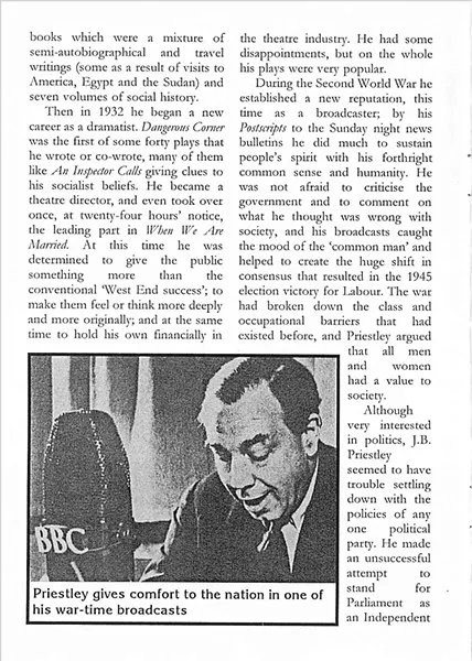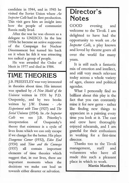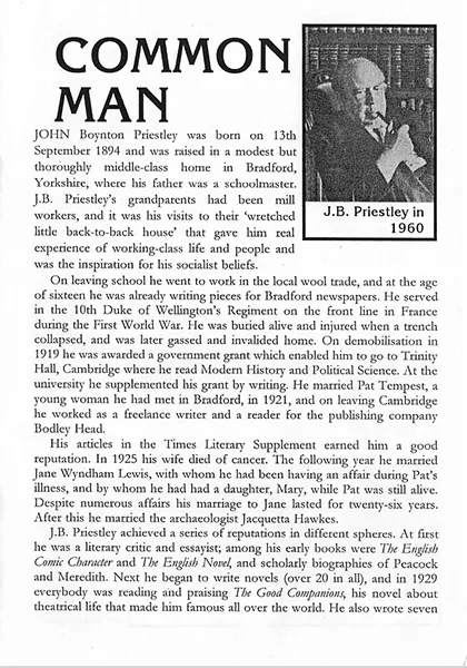 Through this play – and his wartime BBC radio broadcasts – Priestley helped to change the political landscape in Britain and contributed in no small way to Labour’s election victory of 1945 and the subsequent creaton of the welfare state and the national health service.
