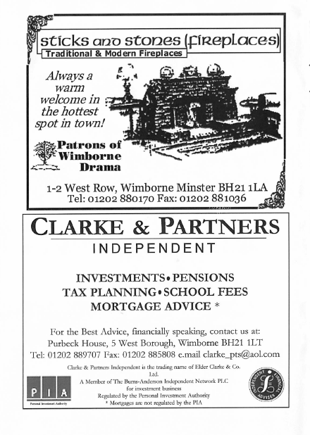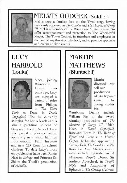 2002 Alex Compiani Amanda Brown Ann Pond Ashley Thorne Chris Brown Comedy David Pile Enid Davies Jan Stevenson Jeremy Austin Lucy Harrold Mark Ellen Martin Matthews Past Productions Peter Brooks Russell Parker Tivoli Theatre Wimborne Drama