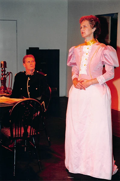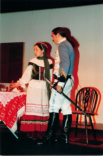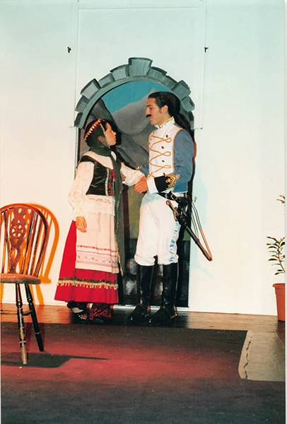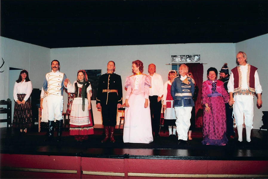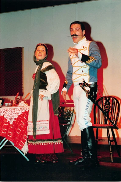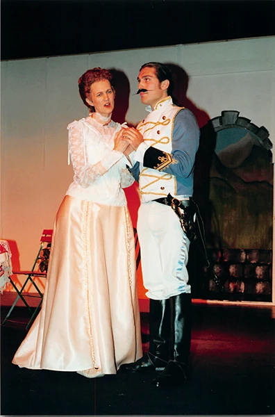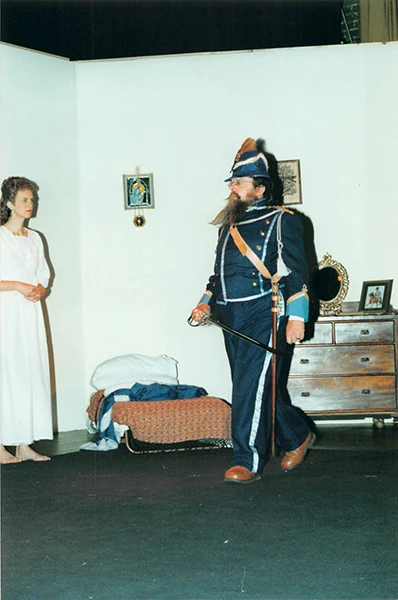Martin Matthews excelled as “chocolate cream soldier” Captain Bluntschli, giving a convincing, well-balanced performance, and Ann Pond was suitably dignified as his love interest, Raina Petkoff, although I found her a little too mature to be entirely convincing.