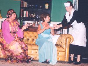 Jan Stevenson as Madame Arcati, Judy Garrett as Ruth and Heather Shew as Edith