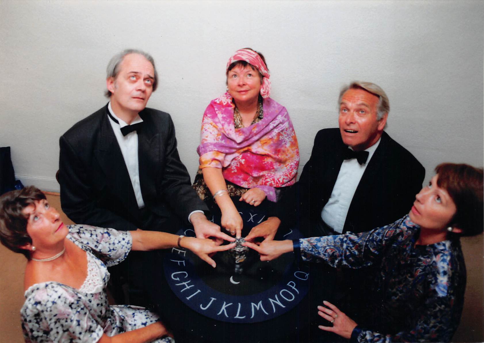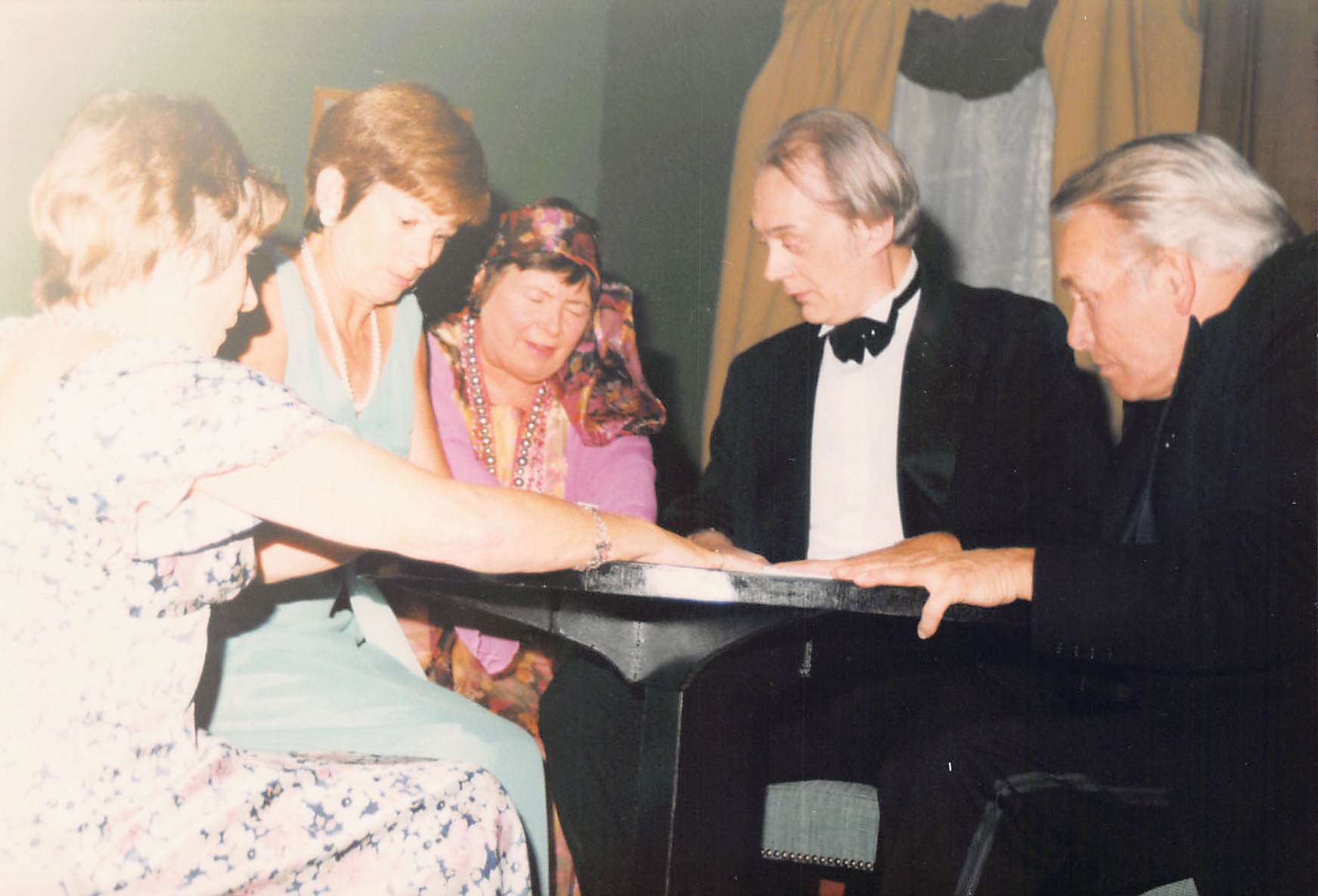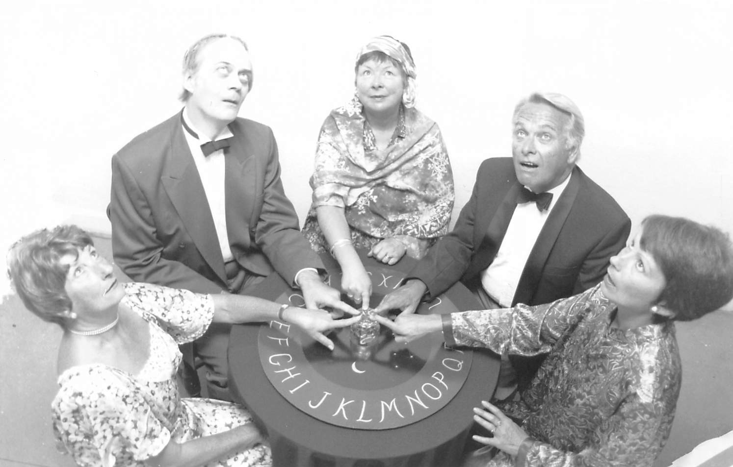 Val Mantle as Mrs Bradman, Judy Garrett as Ruth, Jan Stevenson as Madame Arcati, Jeremy Austin as Charles and Brian Scotford as Dr Bradman