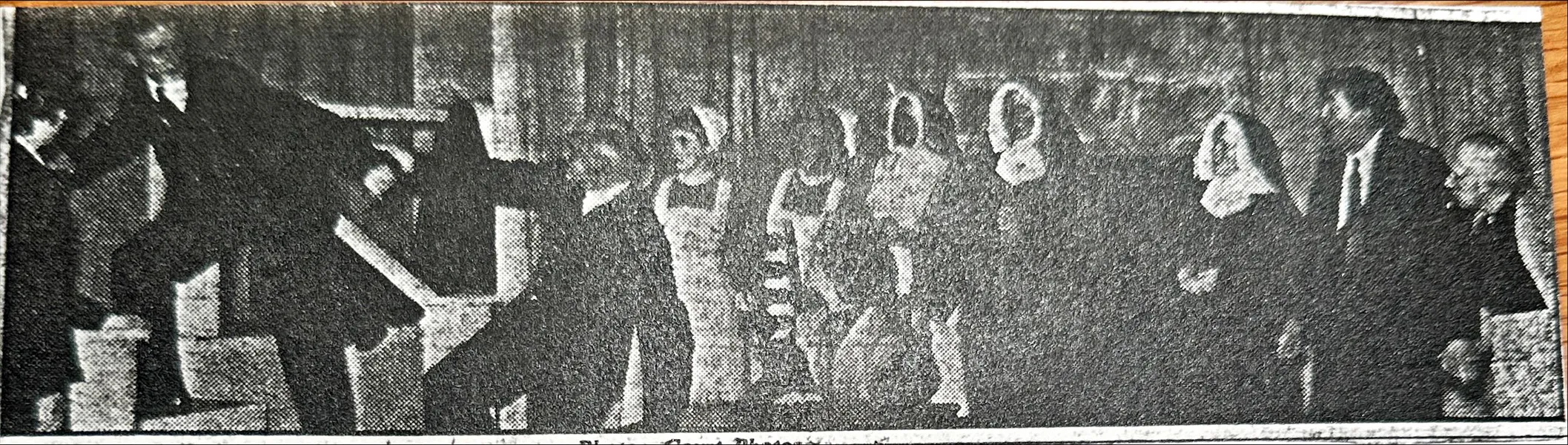 Staging, lighting and effects were of high order, and behind the scenes were Theodore Kendrick (stage manager), and Nicol Rowan (prompt). Richard Drewett painted the set, and Leslie Young was chief steward, with Jack Drewett and Norman Rowe as general and business managers. Refreshments were arranged by Megan Leleu.