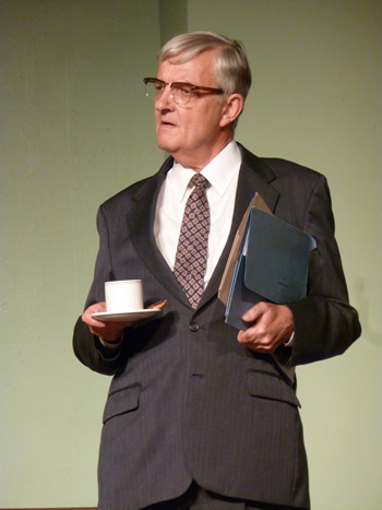 As Mr Jenkins from the Department of Work and Pensions, Simon Jackson puts in one of his best ever performances for the group. The archetypal civil servant, he manages to keep a deadpan demeanour, as he presses Mr Swan for answers, that become more and more far fetched.