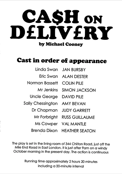 ONE of master-farceur Ray Cooney’s many plays is ‘It Runs in the Family’, and perhaps he knew what a prophetic title it was, since his son, Michael, is also a writer of plays and screenplays. ‘Cash on Delivery’, perhaps Cooney Jr’s best-known play, tells the story of Eric Swan, who has been defrauding the Department of Work and Pensions by claiming benefits for several fictitious lodgers, but now wants to stop. He does have one real lodger, Norman Bassett, who is dragged unwillingly into Eric’s ever more complicated web of lies and deceit when an inspector from the DWP comes calling. Eric also has a nice sideline in selling contraband medical clothing in partnership with his Uncle George, who works in the local hospital.