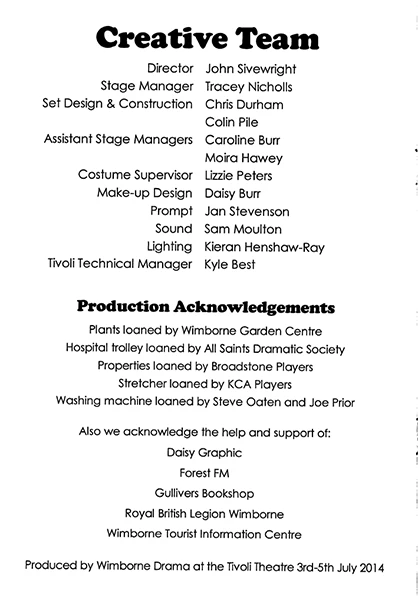 - Stage Manager – Tracey Nicholls