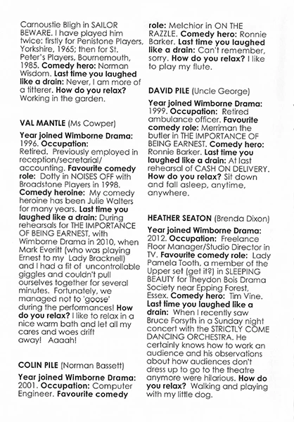 Colin Pile, a regular on local stages, slips into his role as lodger Norman with great ease, and he provides much mirth as he becomes more embroiled in this convoluted plot. David Pile evokes plenty of laughs as Uncle George, none more so than in the closing sequences.