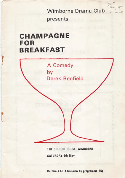 The cast of Wimborne Drama Club combined to provide enjoyable theatre with the three-night showing in Church House of Champagne For Breakfast. Derek Benfield’s modern comedy in three acts provided Tricia Marlow with her first major effort at producing. And using the diffcult combination of seasoned actors and beginners, she managed very well.