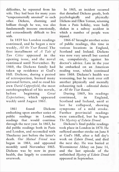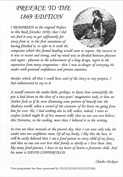 Following the adventures of its eponymous hero from birth through three decades, this acclaimed stage adaptation presents a plethora of brilliant characters from the original novel: the Peggottys; ‘umble Heep; eccentric Aunt Betsey and Steerforth, young David’s champion. Two actors play David Copperfield: one the young David, the other David’s older self, each interacting throughout. This clever device moves the play effortlessly from scene to scene, ensuring a vigorous momentum for the narrative.