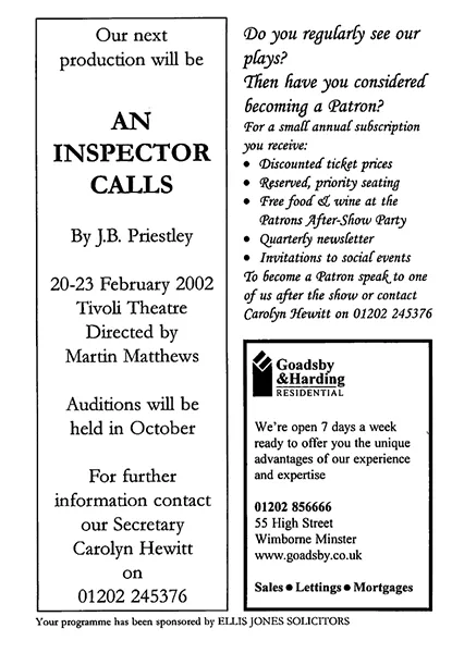 26th – 29th September 2001 @ The Tivoli Theatre, Wimborne