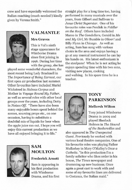 Last, but by no means least, there is a truly brilliant performance from Judy Garrett as Costanza, the housekeeper. Her facial expressions were a joy to behold and told us all we needed to know about her feelings towards the others, even if our knowledge of Italian was totally lacking.