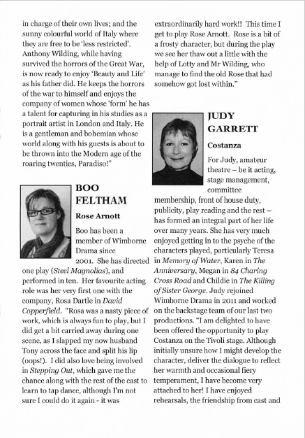 This was Wimborne Drama at its best as director Paul Hewitt skilfully helped the actors to tell the story of two women, disillusioned with their lives in the London of 1922, who seek a month of alternative lifestyle in Italy. And to help with funding the hire of a castle they advertise for two other women to share their idyll.