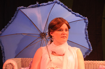 Jan Bursby is a delight as the bored but bubbly and quirky housewife Lotty Wilton, married to a rather dull solicitor, Mellersh – of whom more later. Boo Feltham plays the sad, religious Rose Arnott with real feeling, although unfortunately some of her early facial expressions were lost under the shadow thrown by her hat brim.