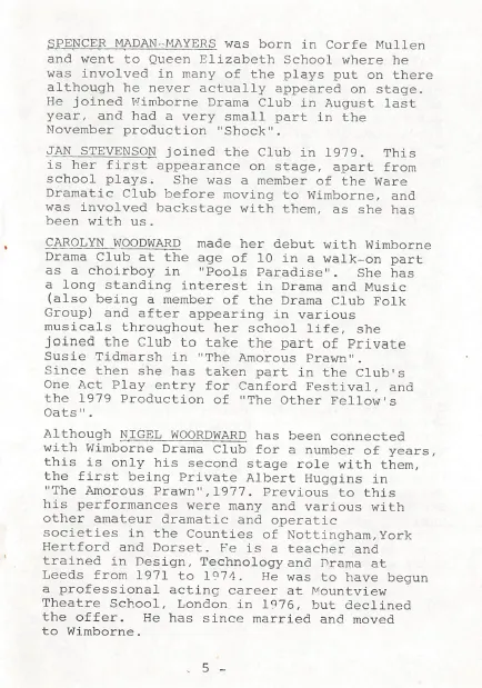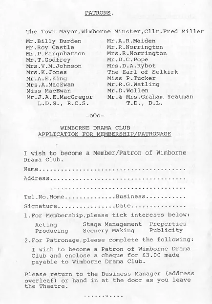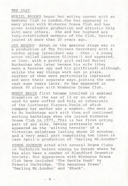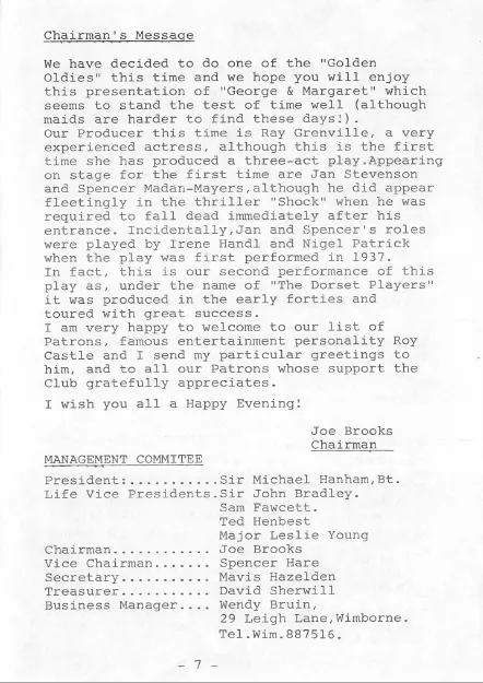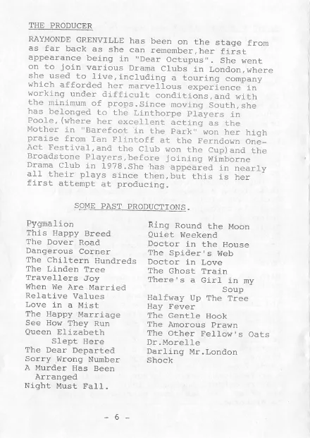 The prduction was well served by the backstage team, gordo Eidmans, roger Grenville, Joyce Eidmans and Mavis Hazleden. Congratulations to Wimborne Drama Club for their excellent revival of this ‘golden oldie’.