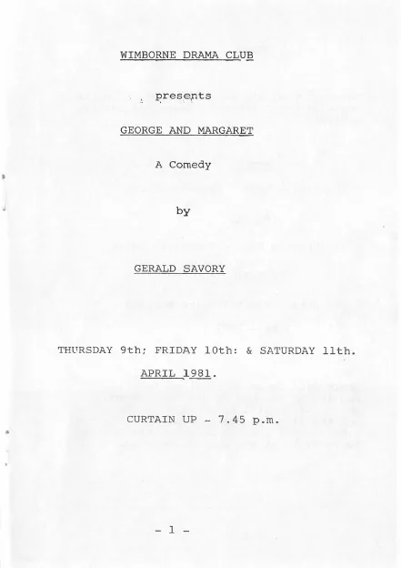 When Gerald Savory’s domestic comedy, George and MArgaret, first appeared in the West End in the thirties it was greeted with the same kind of pleasurable reaction which as been a success of the Alan Ayckbourn plays. Though based on different socail conditions – a few middle-class families nowadays have a ‘living-in’ maid – the play belongs to the same genre.