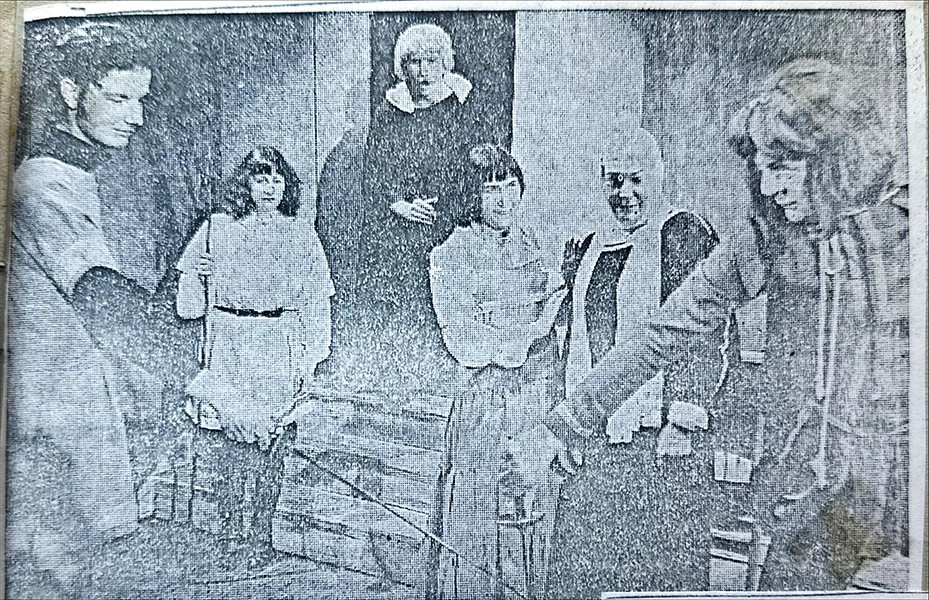 Harlequinade is entertainment on a very different level, but no less acceptable for that. With a cast of 15 it certainly gives oppurtinities to many players to spread their wings. Joe Brooks as the ageing Shakespearean actor, confronted with babe-in-pram evidence of a past misdemenaour, is most impressive. Most of the other 14 players also gave good accounts of themselves, with Raymonde Grenville, Muriel Brooks and Thelma Dryden well to for.