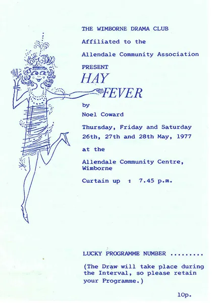 It’s a great pity that more people in Wimborne are not interested in the Theatre because the town can boast a lively dramatic society. Once again the Wimborne Drama Club proved that they are a cut above similar societies when , for their contribution to Jubilee celebrations in the town, they put on Noel Coward’s witthy comedy Hay Fever at the Allendale Centre, on Thursday, Friday and Saturday last week.