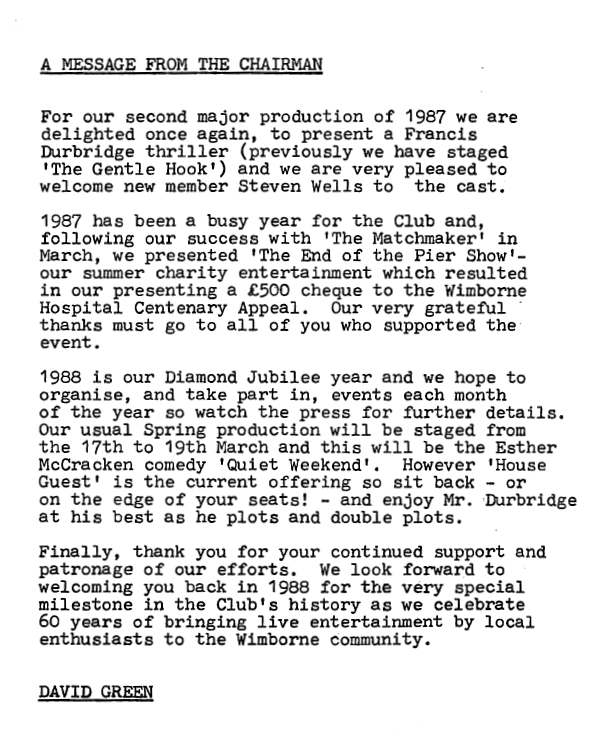 22nd – 24th October 1987 @ The Allendale Centre, Wimborne