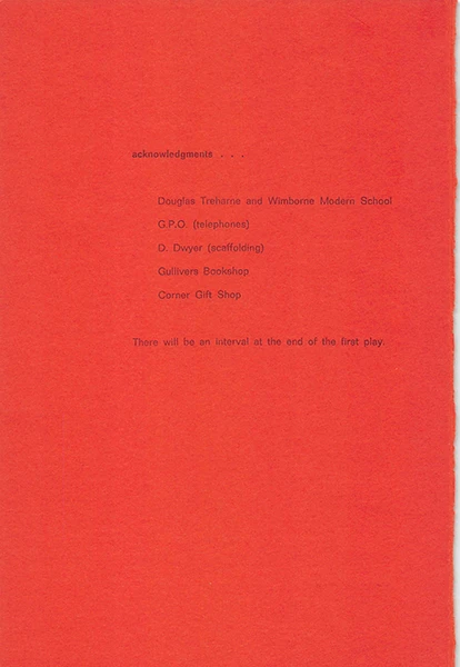 The second playlet, ‘Trevor,’ centres on a pair of lesbians who dragoon an out-of-work actor into helping them to bamboozle their respective parents, when they arrive simultaneously. While conforming to the conventions of the ‘permissive society,’ this playlet has all the familiar ingredients of farce. Richard Withers had a boisterous and exhausting part as the actor, Trevor.