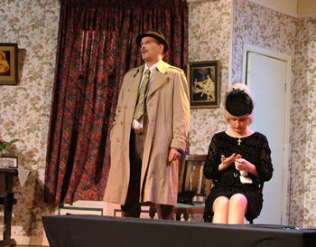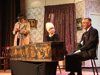 Richard Neal playing Inspector Truscott hit the mark and his exclamation of horror on discovering the corpse’s glass eye captured the macabre moment perfectly. Penny Coulson made an impressive debut for Wimborne Drama as homicidal nurse Fay, successfully turning the audience’s perception of the character from an angel of mercy to an angel of death. Ryan Gregg’s debut at Wimborne as the deceased’s homosexual bank-robbing son was also convincing.