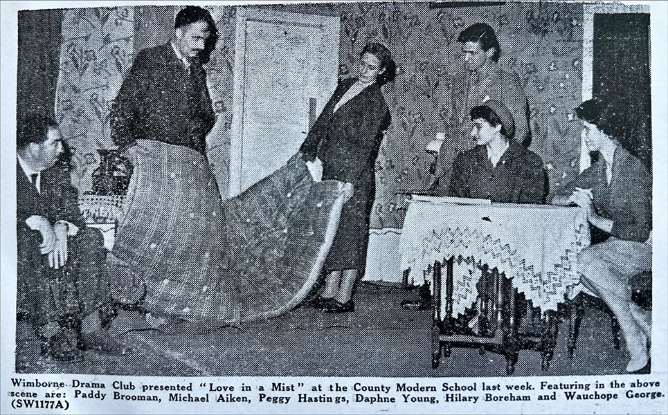 Wimborne County Modern School was the scene of an entertaining production of Kenneth Horne’s three-act comedy, “Love in a Mist”, by the Wimborne Drama Club on Friday and Saturday.