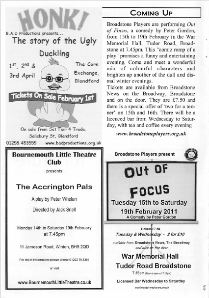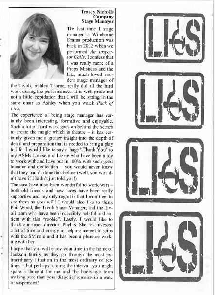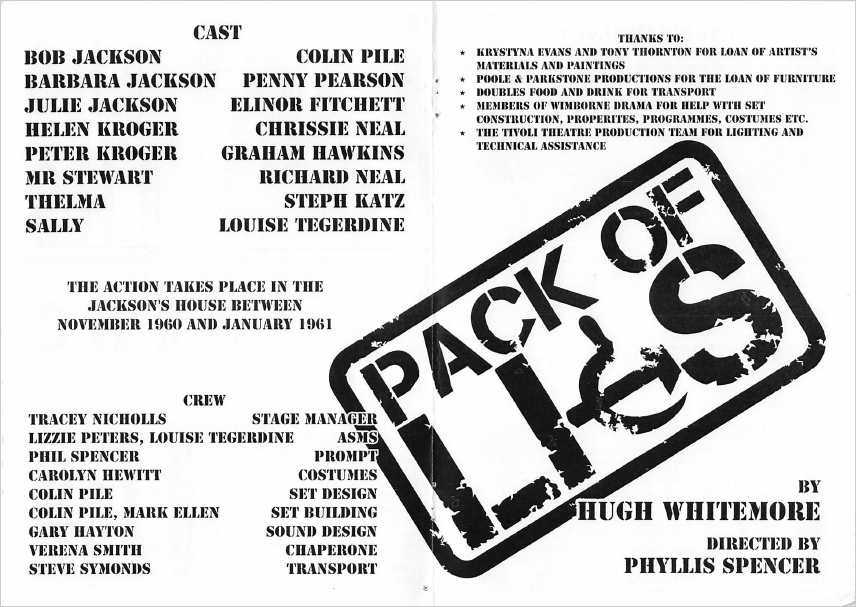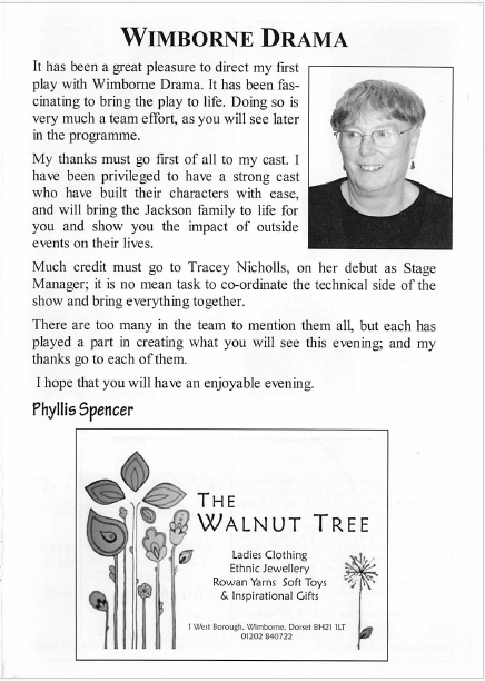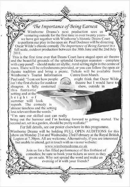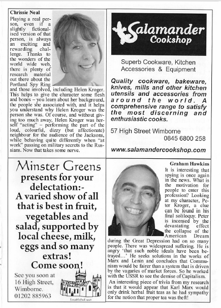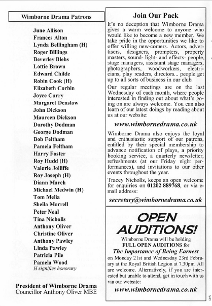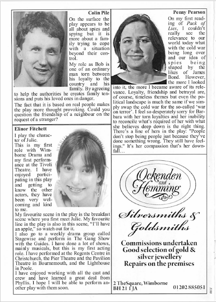 2011 Carolyn Hewitt (Woodward)(Young) Chrissie Neal (Wathen) Colin Pile Elinor Fitchett Gary Hayton Graham Hawkins Lizzie Peters Louise Tegerdine Mark Ellen Past Productions Penny Pearson Phil Spencer Phyllis Spencer Richard Neal Steph Katz Steve Symonds Thriller Tivoli Theatre Tracey Nicholls Verena Smith-Maurer Wimborne Drama