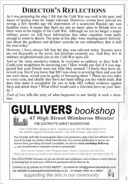 Whitemore’s dramatisation of the London-end of this intriguing scandal, which sees neighbours pitted against neighbours, was brought to nervy life on the Tivoli stage by a fantastic eight-strong Wimborne Drama cast.