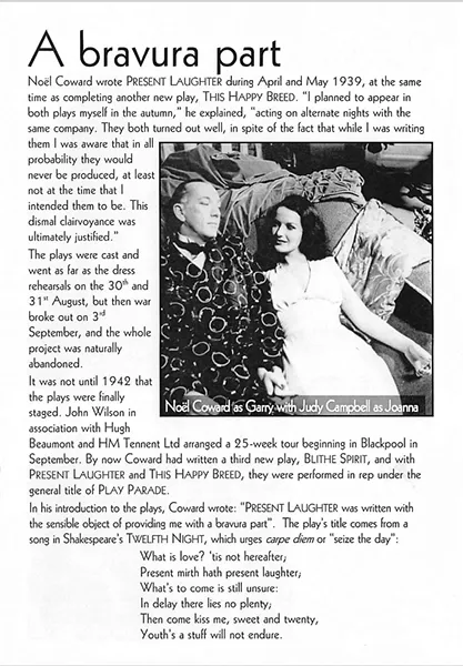 NOEL Coward’s semi-autobiographical comedy is a slice of life concerning a few days in the life of a self-obsessed comic actor as he prepares to sail off to an African tour. He is beset in his efforts to perform such preparations by the comings and goings of the various people in his life as the story descends into farce in the latter second half.