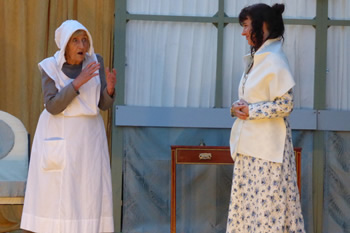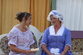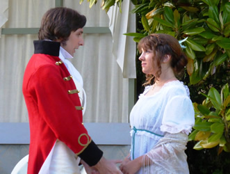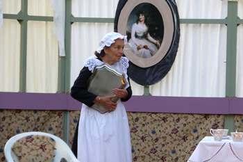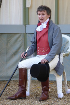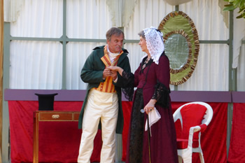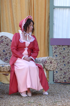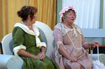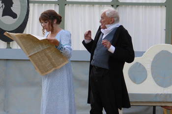 All of those characters are excellently played. Chrissie Neal gives a first-class comedy performance as Mrs Bennet, taking it just to the point where it could tip into pantomime caricature but skilfully keeping the right side of the line. She makes Mrs Bennet a monster, but a loveable monster. This is all the more commendable because she took over the part at comparatively short notice. She has some splendid sparring matches with Gary Paine as Mr Bennet. He seems rather too young and vigorous for a man with five all but grown-up daughters, but he puts across some good put-downs of his frenetically tactless wife, and his fond relationship with his daughters is touching.