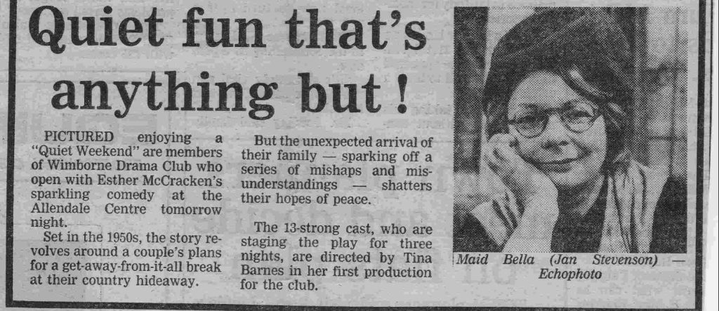 Wimborne drama Club’s 60th anniversary year got off to a cracking start last week with their production of Esther McCracken’s comedy Quiet Weekend.