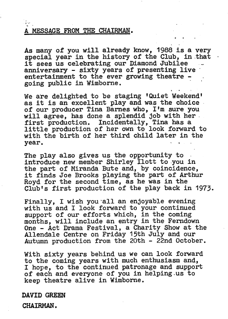 17th – 19th March 1988 @ The Allendale Centre, Wimborne