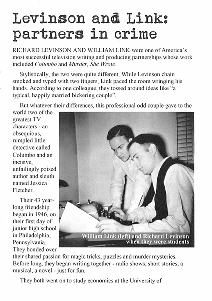 From the TV play by the writers of MURDER, SHE WROTE Richard Levinson & William Link