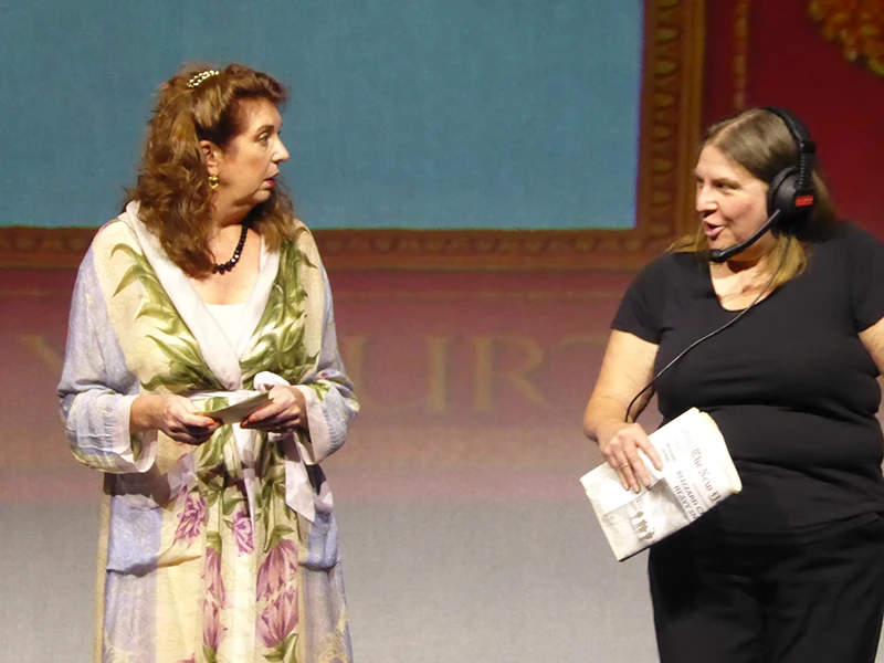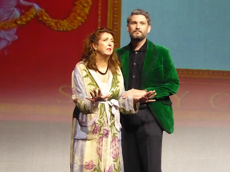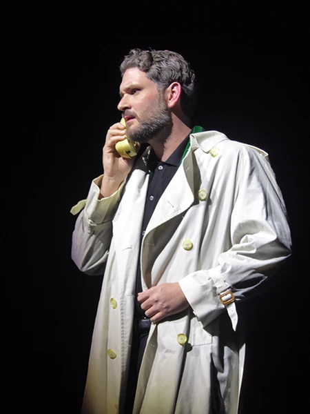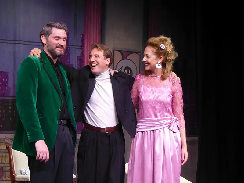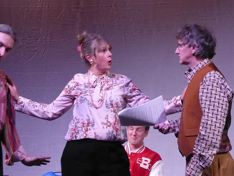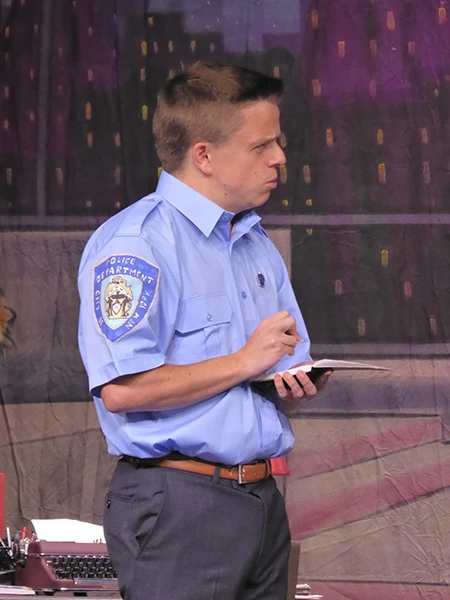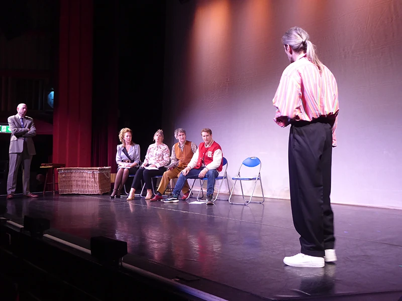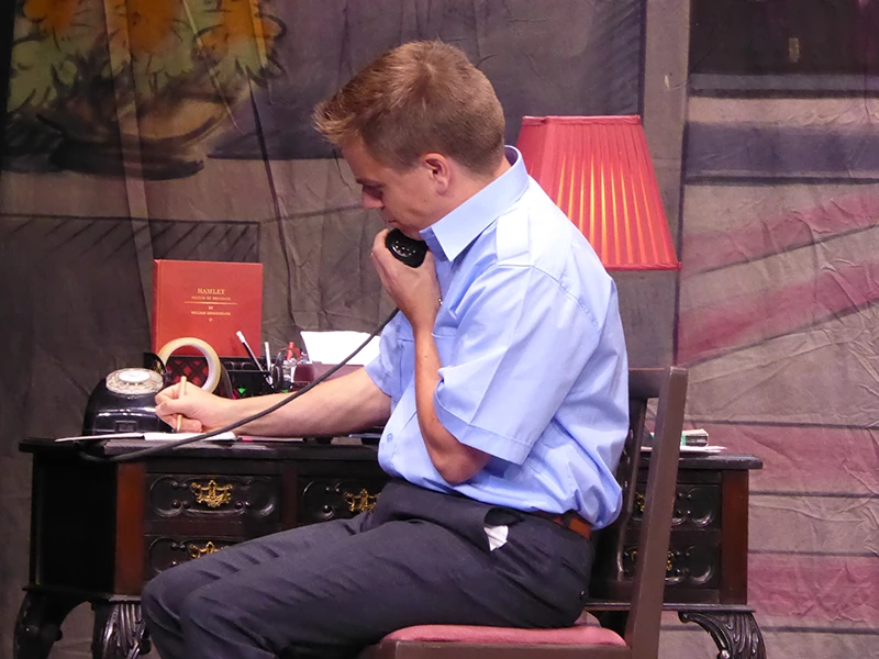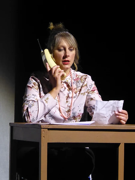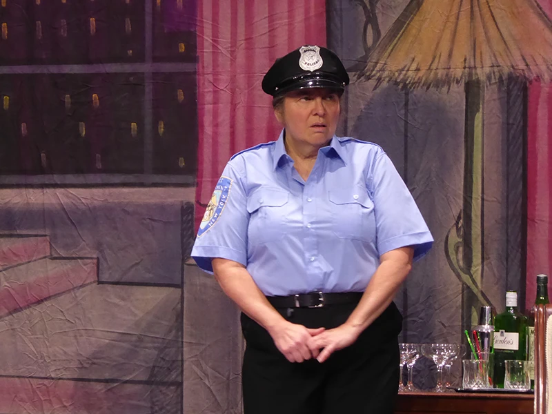 The ensemble is completed by Russ Guillaume as Ernie the caretaker, Calum Hearne as the police officer, Suzanne Viney in three small roles and Andy Gill and Richard Scotson as mysterious ‘men in the auditorium’.