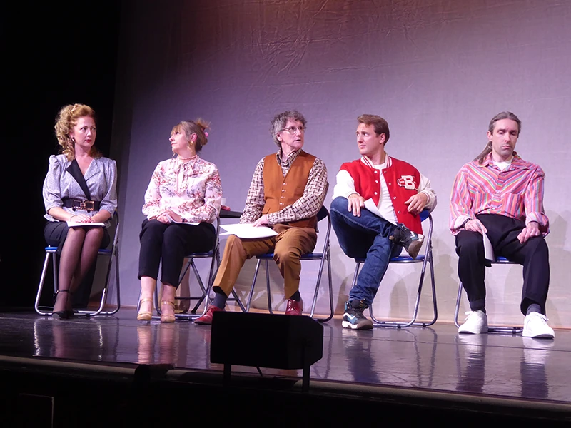 It was quite a different production from the normal murder mystery/ thriller, which was refreshing, if not a little challenging. Set in the 1980s (though the costumes were a little inconsistent in this regard) and in an otherwise empty theatre, there was a nicely eerie feel about the production. It was good to see a large cast (13) as well.