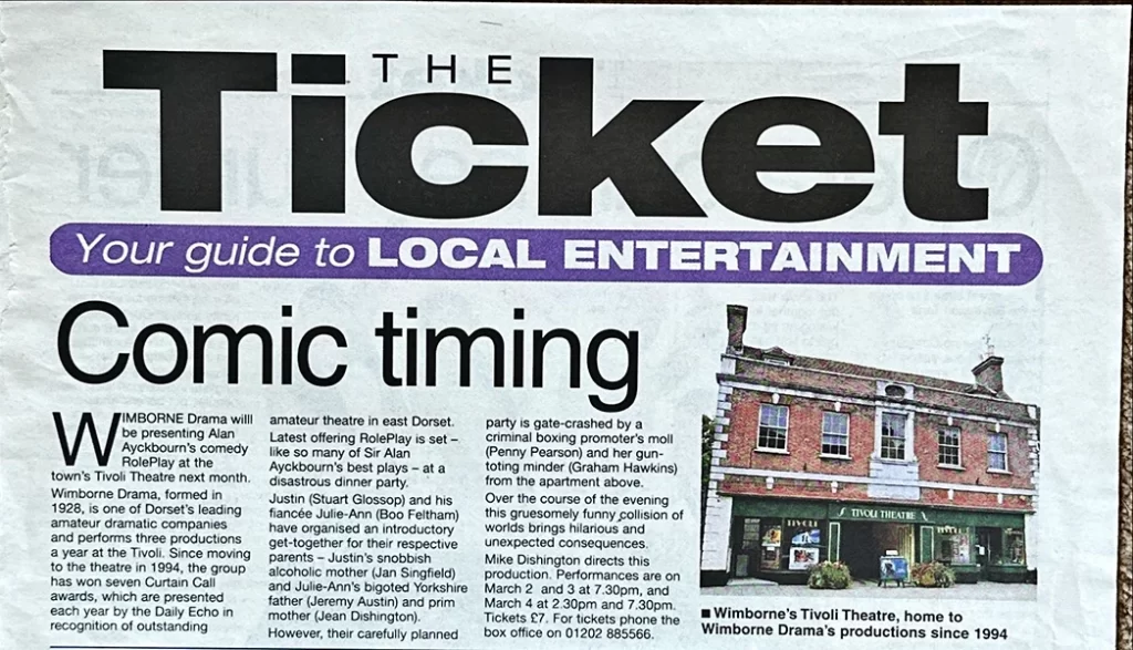 The cast of RolePlay, the latest production by Wimborne Drama, embraced their parts convincingly, each appearing to wear the mantle of their adopted personas with ease and comfort.
