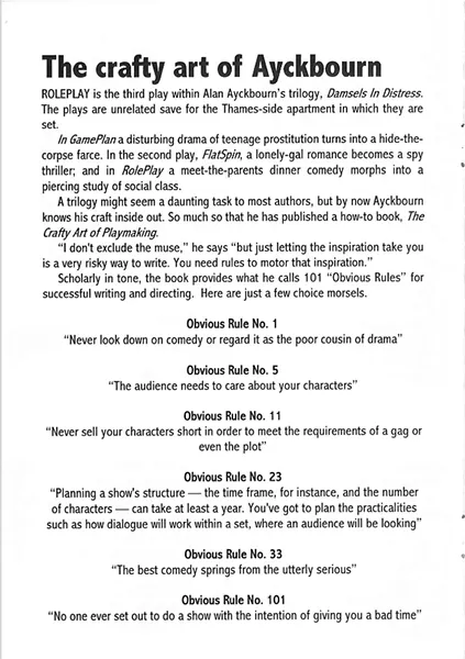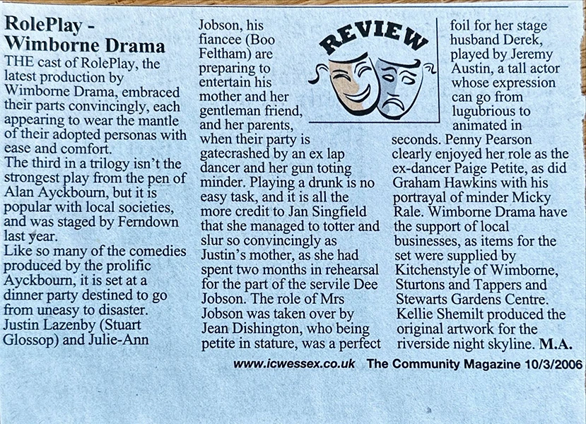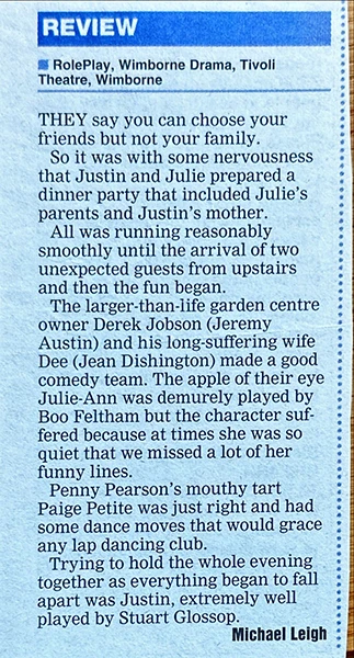 The cast of RolePlay, the latest production by Wimborne Drama, embraced their parts convincingly, each appearing to wear the mantle of their adopted personas with ease and comfort.