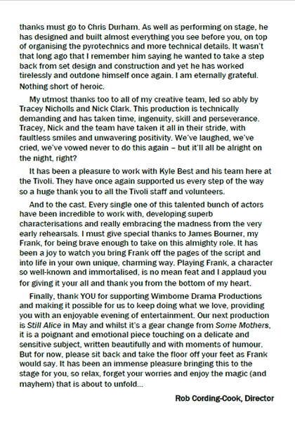 This is amateur theatre at is very best and Rob Cording-Cook should take a bow for directing this intricate production with such skill. The creative team also deserve accolades.