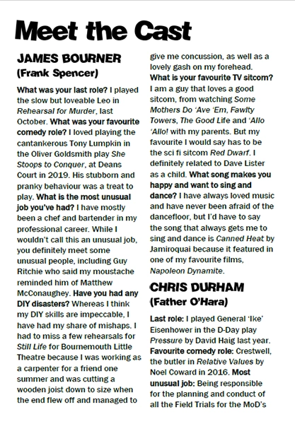 Such is the expertise of the actors on stage, that by the end of the production, the original actors had slipped from my mind, and James Bourner had become Frank Spencer and Lindsay McGowan, his much put upon and very loyal wife, Betty.