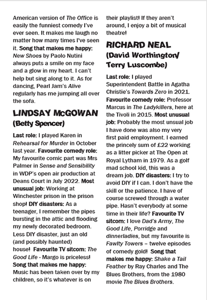 It is good to see Richard Neal on stage again, as he always gets under the skin of his characters – and in this case two characters, David and Terry. Likewise Andy Gill as the theatrical Leslie and the dour Constable.