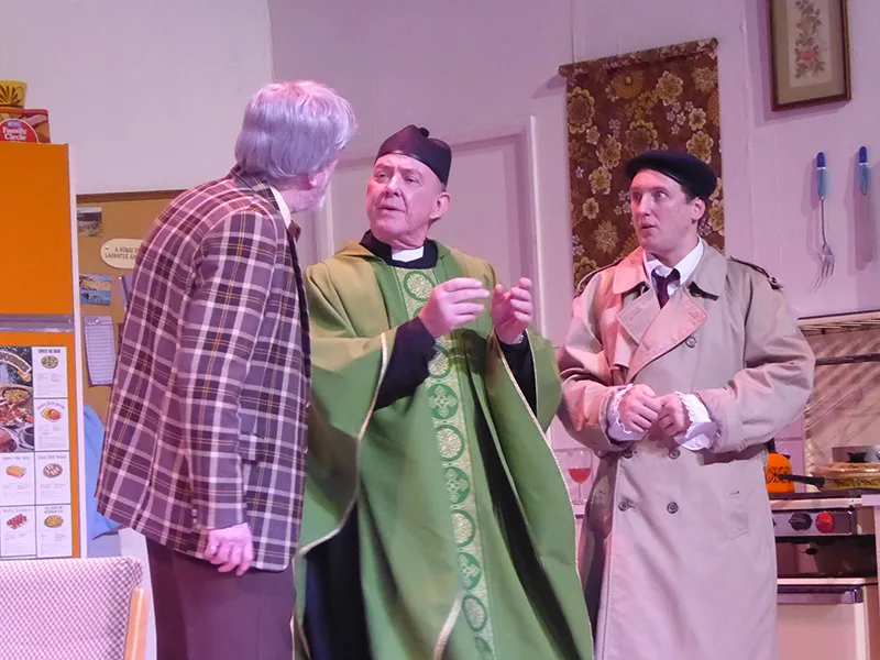 Timing is all in just such a play and massive plaudits have to go to Chris Durham, who not only plays Father O’Hara, he also designed and built the stage set and organised the pyrotechnics.