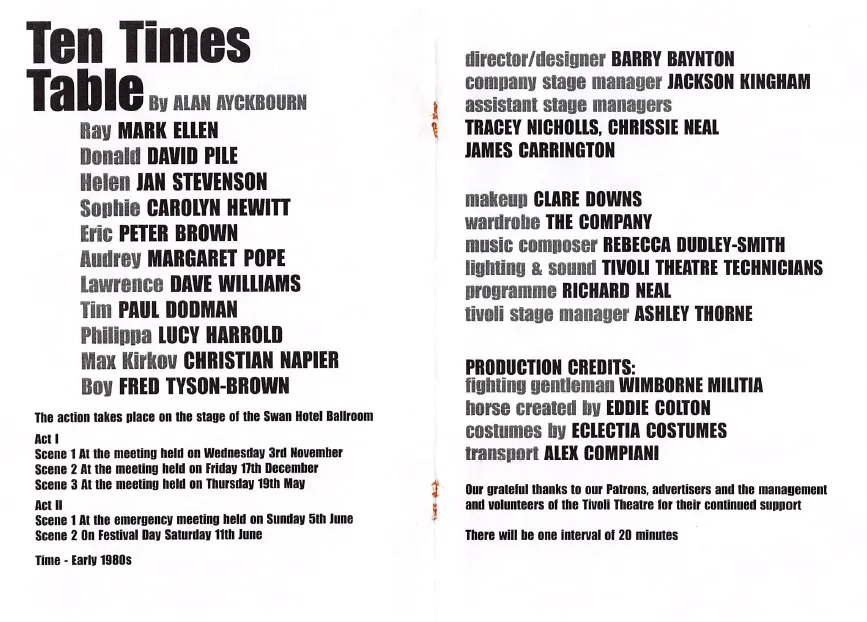 ALAN Ayckbourn’s Ten Times Table is an hilariously funny insight into the internal wrangling of life on a committee. John Cockle, William Brunt and The Massacre of the Pendon Twelve are colourful figments of the playwright’s imagination that inspire the characters in the play to organise a pageant.