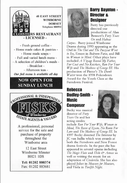 16th – 19th May 2001 @ The Tivoli Theatre, Wimborne