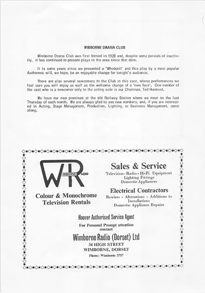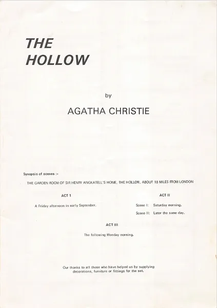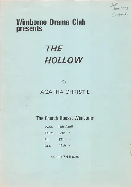 THE Hollow, Agatha Christie’s well-aired mystery play, by Wimborne Drama Club in Church House had a bad start. A scene between the film star (Liz Knight) and the murdered Cristow (Mike Waring) improved things and recovery was aided by the conflidently competent Elizabeth Anthony.