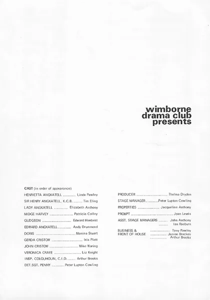 Producer was Thelma Dryden and stage manager Peter Cowling.