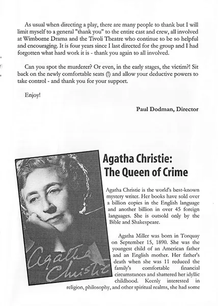 With murder mystery games now part of many a social gathering, the staging of an Agatha Christie play is a good recipe for ensuring a good house.