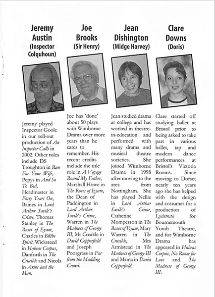 Similarly, Jeremy Austin is your archetypal, laid back police officer. He took the title role in An Inspector Calls last year, and Inspector Colquhoun in The Hollow. Well done also to the other players Boo Feltham, Jean Dishington, Mark Ellen, Yvonne Henley, Clare Downs and Russ Guillaume.