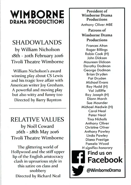 For an am-dram group to attract such a good audience is evidence of the esteem with which this group is held. Their open air production of Pride and Prejudice in the summer was equally well supported.