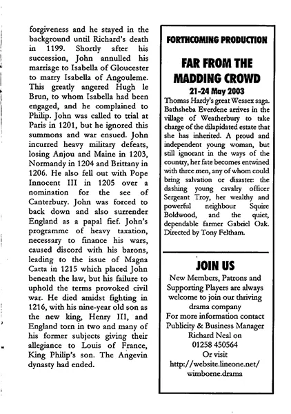 12th – 15th February 2003 @ The Tivoli Theatre, Wimborne