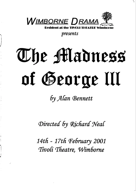 It would have taken hearts of stone for the audience not to be moved by Geoff Whipp’s portrayal of King George III. The play must have a strong leading actor, and here Wimborne Drama was blessed.