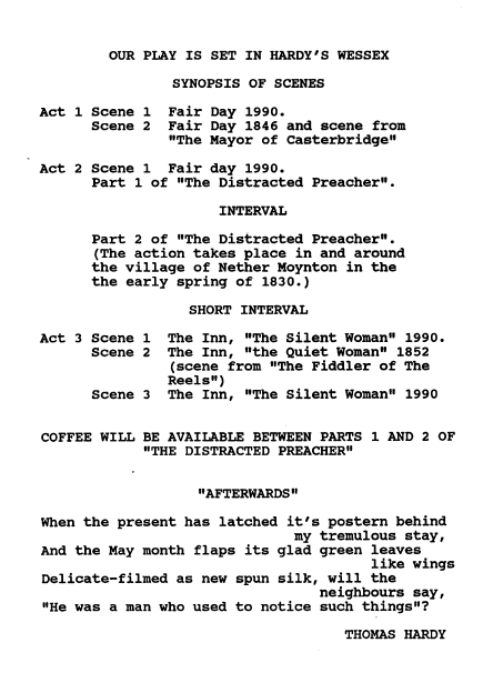 A selection of scenes, sketches and music to celebrate the life, times and achievements of Thomas Hardy.